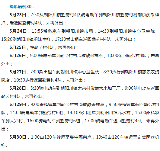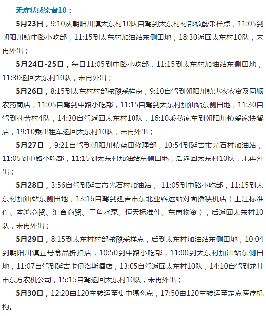 5월 30일 0-24시, 연길에서 본지방 확진병례 1례(경증형), 무증상 감염자 2명이 새로 증가되였다. 3월 1일 이후로, 확진병례 도합 30례, 무증상 감염자 10명이 보고되였다. 아래는 새로 증가된 확진병례와 무증상 감염자의 이동경로이다.