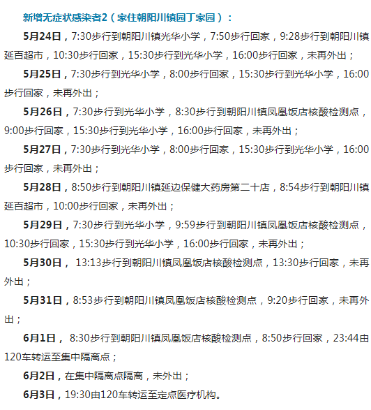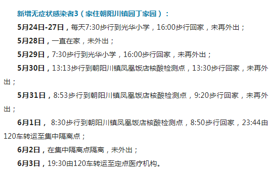 6월 3일 0-24시, 연길시에서 무증상 감염자 3명이 새로 증가되였다. 아래는 새로 증가된 무증상 감염자의 이동경로이다.
