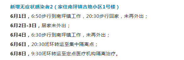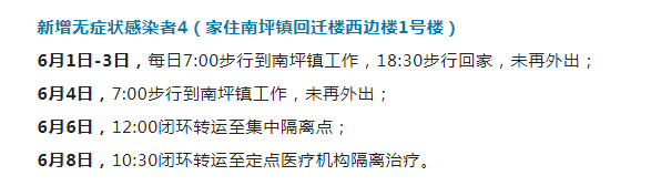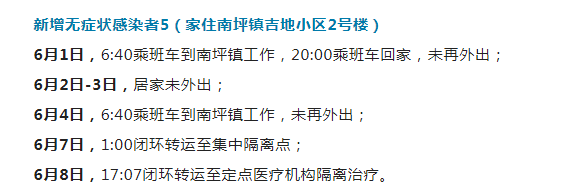 6월 8일 0-24시, 화룡시에서 무증상 감염자 5명이 새로 증가되였는데 모두 집중격리관리통제인원이다. 아래는 새로 증가된 무증상 감염자의 이동경로이다.
