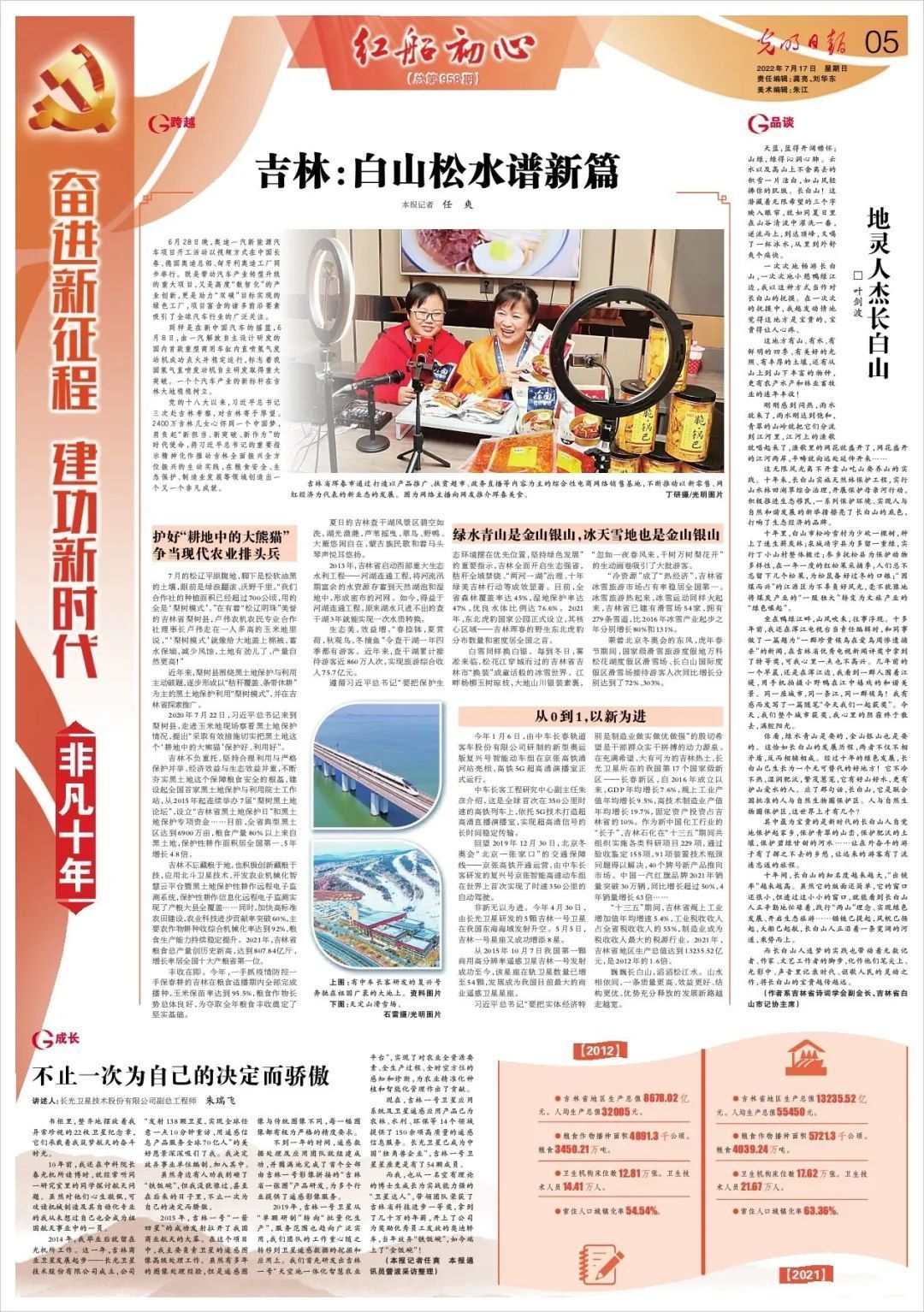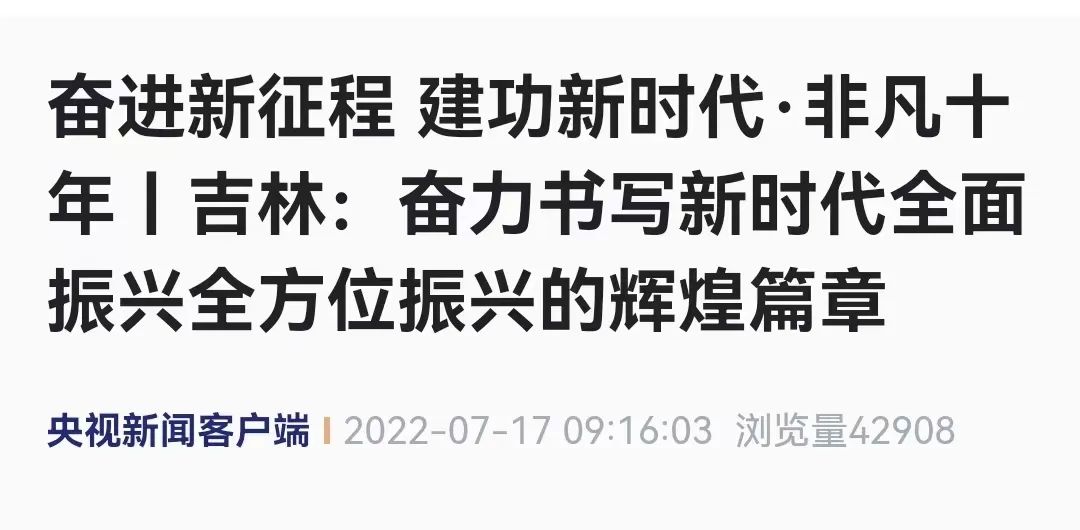 7월 16일과 17일 인민일보, 신화사, 중앙텔레비죤방송국, 광명일보, 경제일보 등 중앙의 주요매체들은 분분히 "분진의 새 장정, 공훈의 새 시대·범상치 않은 10년" 길림편을 통해 문자, 사진, 영상 등 다양한 방식으로 길림성을 조명했는데 그중 아름다운 연변이 빈번히 등장하면서 중요한 볼거리가 되였다.