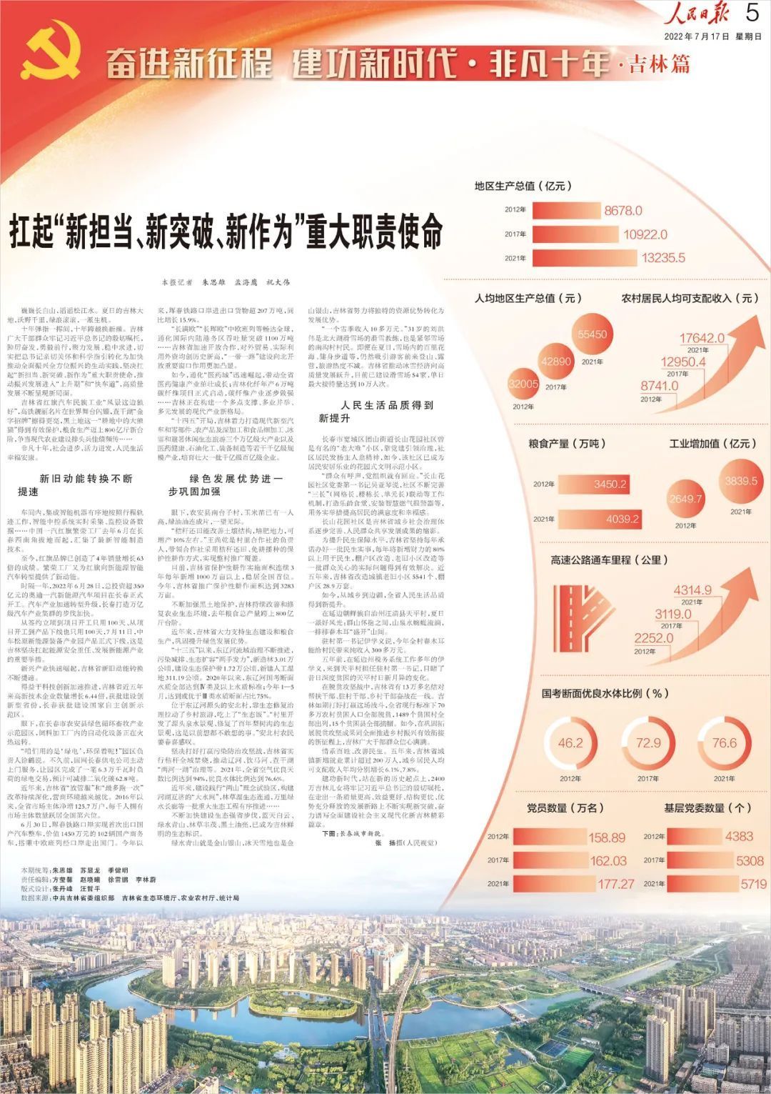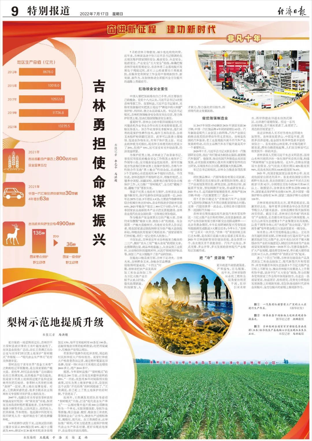 18차 당대회 이래 길림성의 광범한 간부군중은 습근평 총서기의 부탁을 명기하고 총서기의 친절한 배려와 과학적 가르침을 길림성 전면진흥, 전방위진흥을 추동하는 생동한 실천으로 전환시킴으로써 고품질발전에서 부단히 새로운 국면을 개척했다.