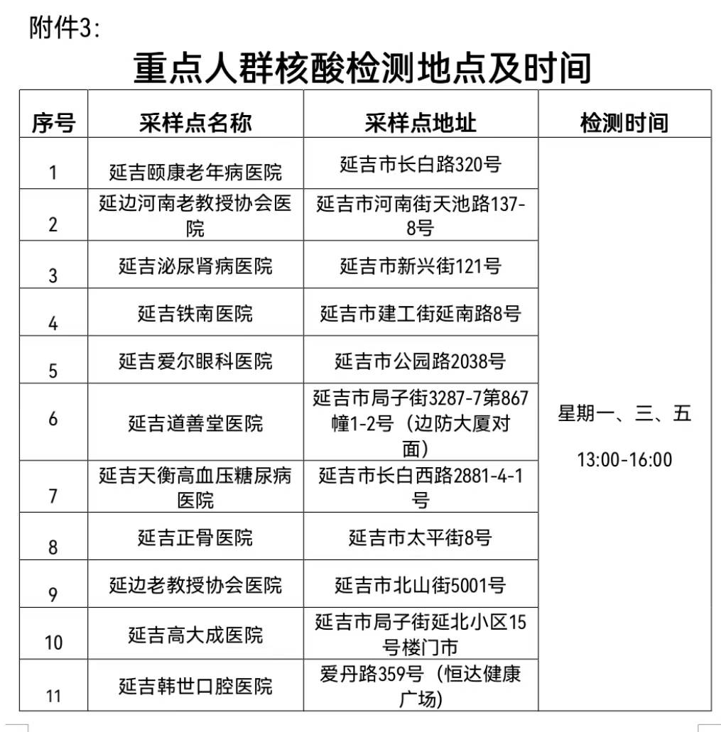 부록 3: 연길시 중점인원 핵산검측지점 및 시간