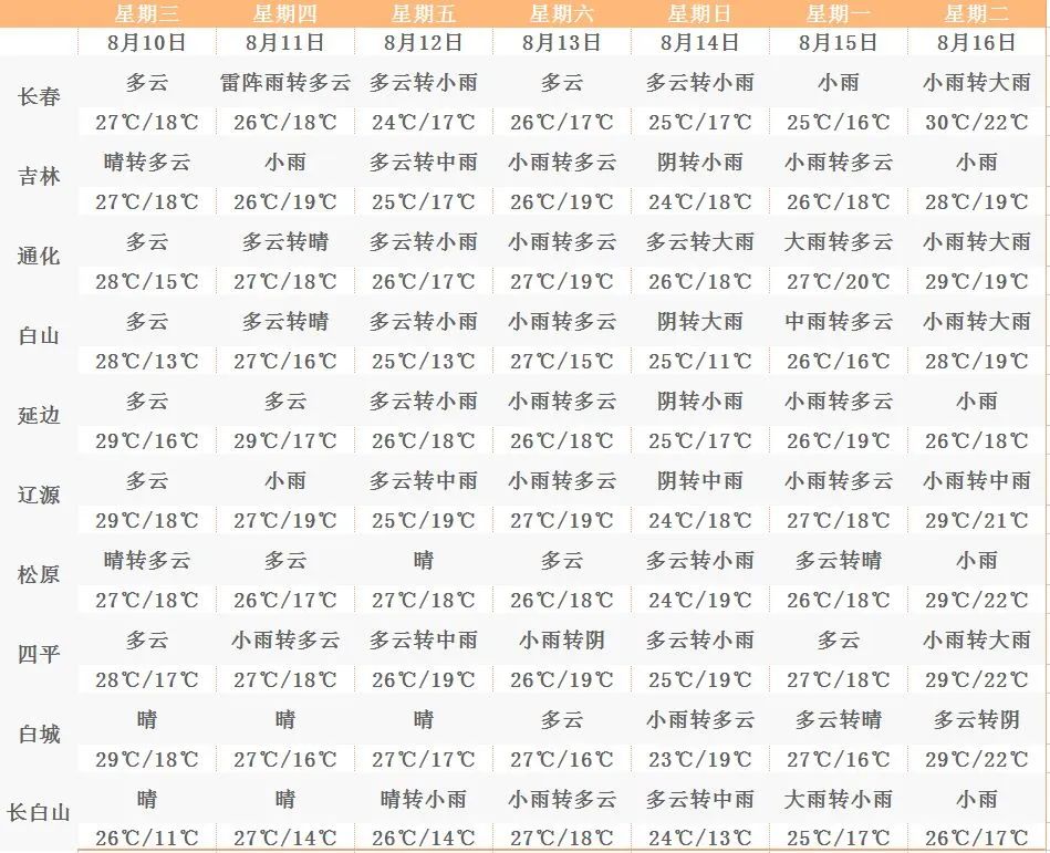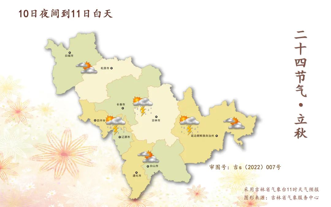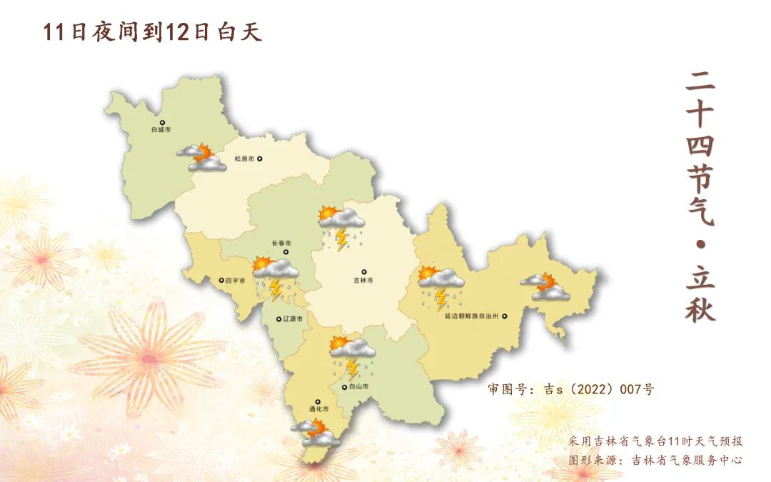 11일 밤부터 12일 낮까지 우리 성은 구름이 많고 장춘, 사평, 료원, 길림, 통화 북부, 백산, 연변 서부, 장백산보호구에 소나기 혹은 천둥번개를 동반한 소나기가 내리게 된다.
