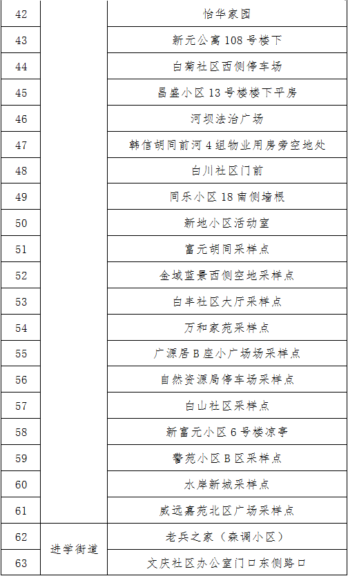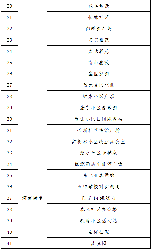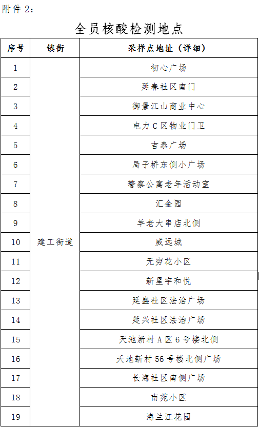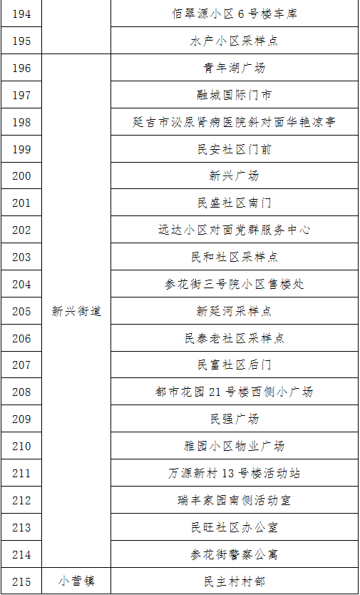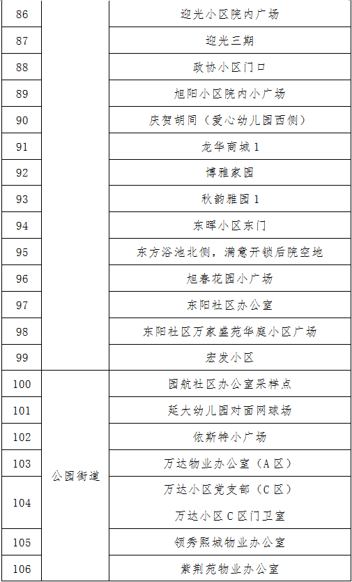 (2) 이번 핵산검측 샘플채취는 상시화 선별검사로 광범한 시민들이 거주지 진, 가두의 핵산검측날자에 따라 관할구역내 핵산검측지점에 가서 검측하길 바랍니다. 전염병 예방과 관리는 모두의 책임이며, 여러분의 지지와 협조가 필요합니다!
