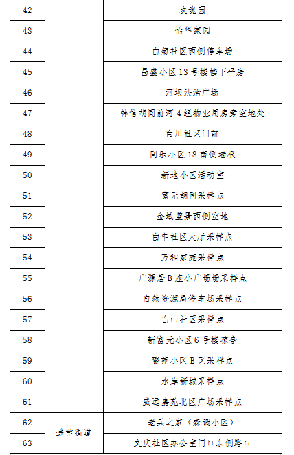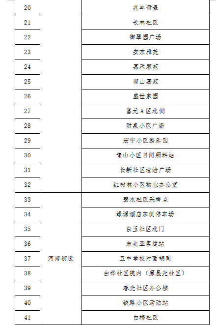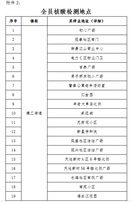 (2) 이번 핵산검측 샘플채취는 상시화 선별검사로 광범한 시민들이 거주지 진, 가두의 핵산검측날자에 따라 관할구역내 핵산검측지점에 가서 검측하길 바랍니다. 전염병 예방과 관리는 모두의 책임이며, 여러분의 지지와 협조가 필요합니다!