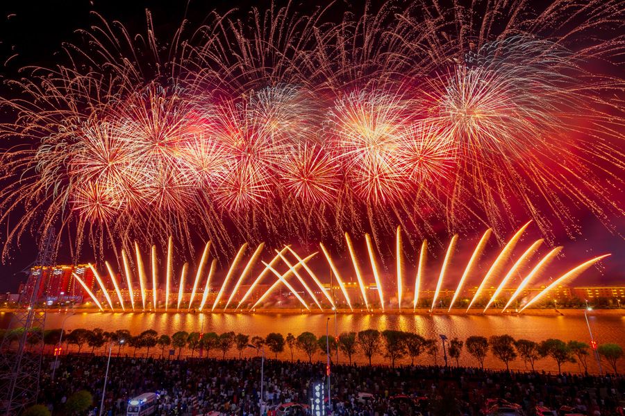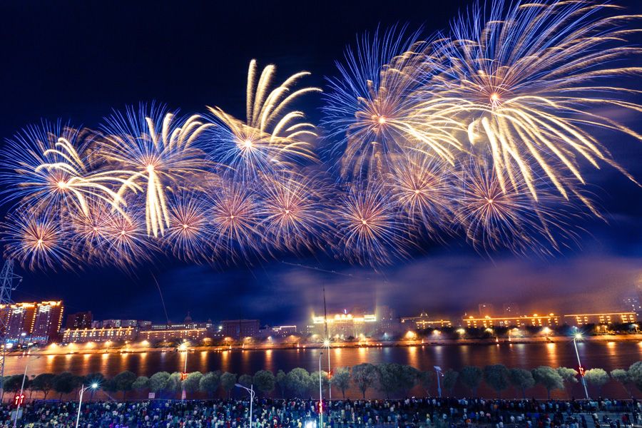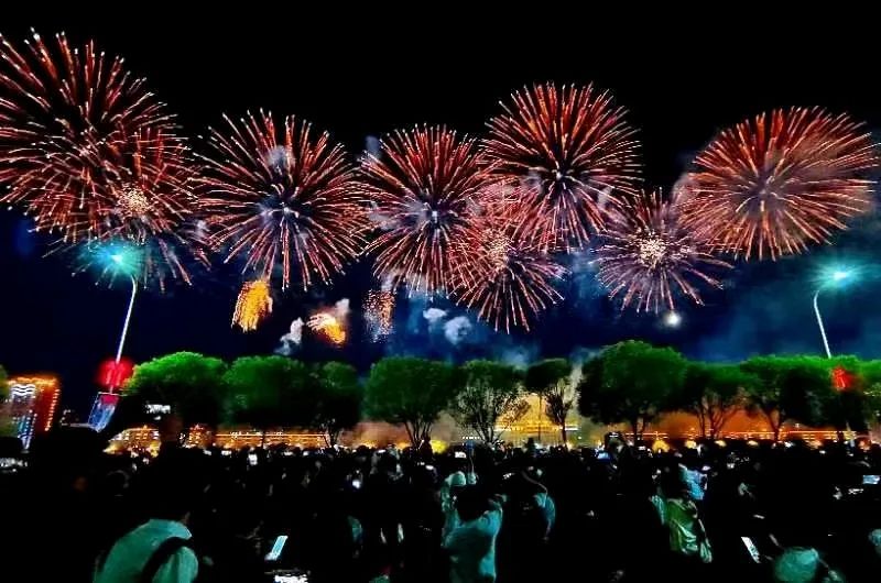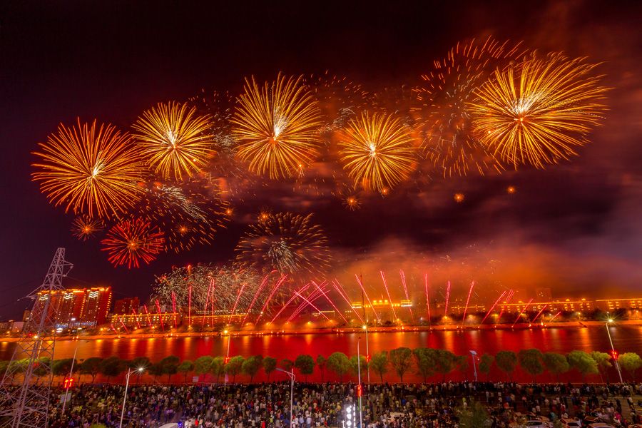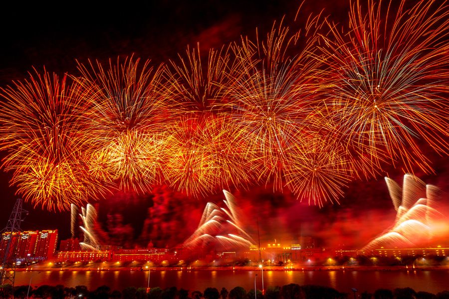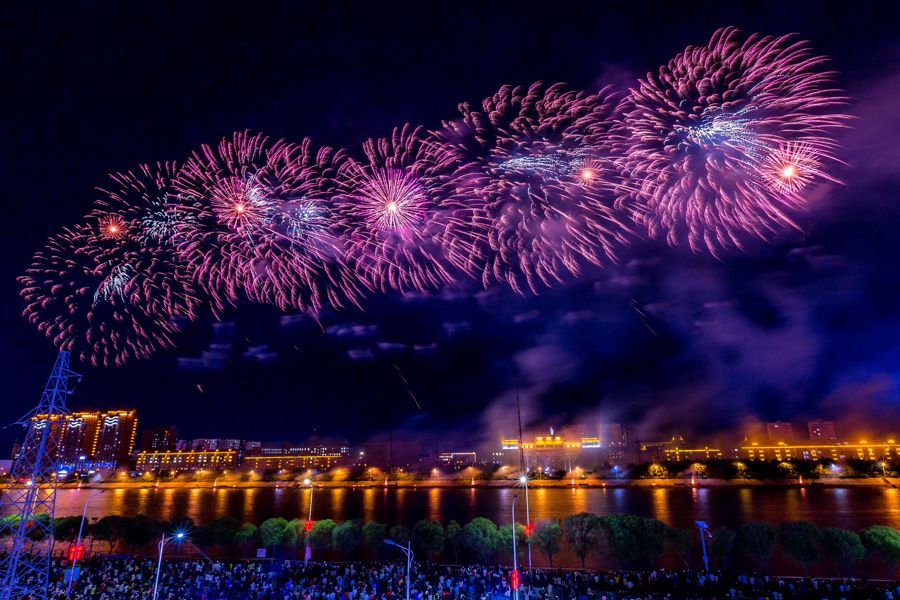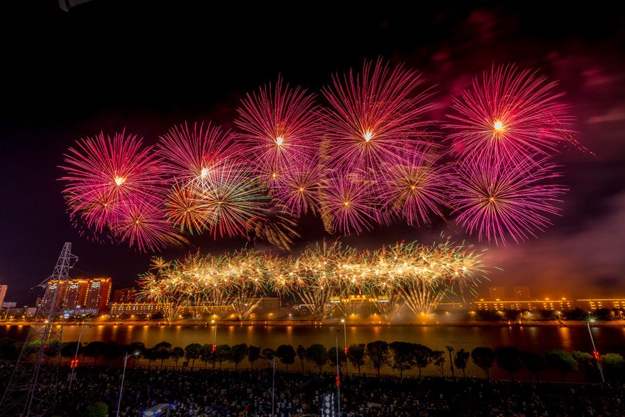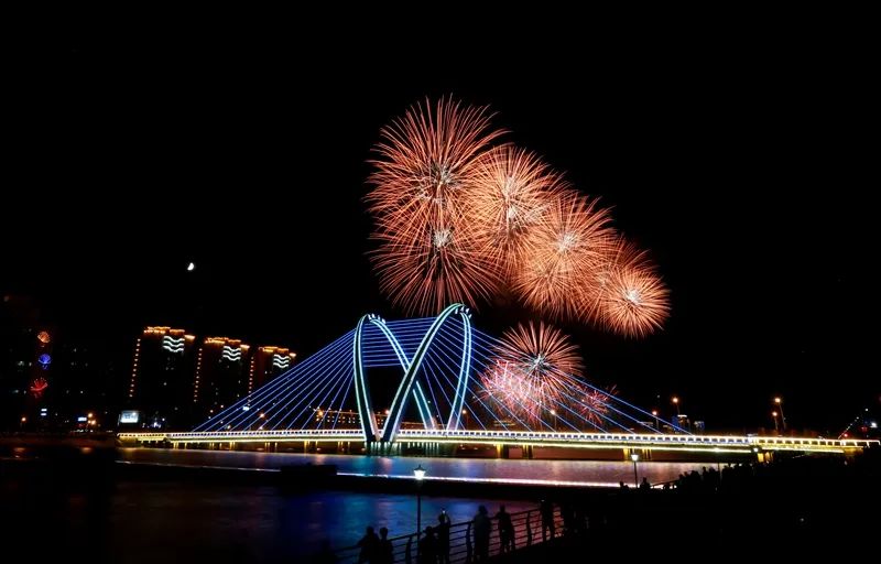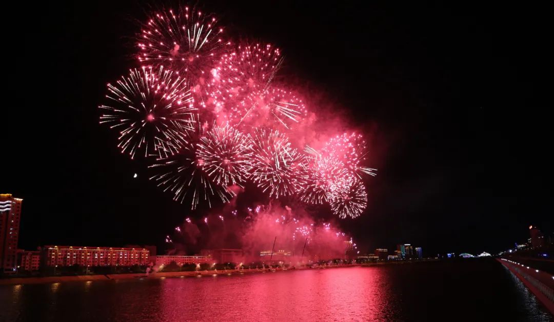 저녁 7시, 줄기줄기의 꽃불이 솟아올라 연길의 밤하늘을 화려하게 밝히면서 꽃불야회의 막을 열었다. 오색찬란한 꽃불들은 서로 화려함을 뽐내면서 연길의 밤하늘을 수놓았다.