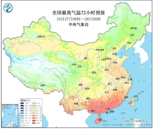 27일부터 28일까지 북방 여러 지역의 기온은 이번 과정의 낮은 수준까지 내려갈 예정이며 화북과 서북 지역 동부의 최고기온은 15섭씨도 좌우로 하락하고 동북 대부분 지역은 최고기온이 10섭씨도 좌우로 떨어질 전망이다.