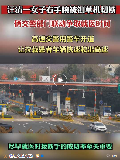 "왕청현병원에서 처리한 후 연변병원으로 긴급이동했는데 교통방송과의 련계를 통해 아주 빨리 연변병원에 도착했습니다. 고맙습니다." 지선생의 말이다.