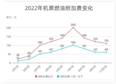 10월 31일, 여러 국내 항공사는 국내선 유류할증료 징수기준을 조정했는데 2022년 11월 5일(발권일)부터 800km 이상 구간은 10원 인하한다.