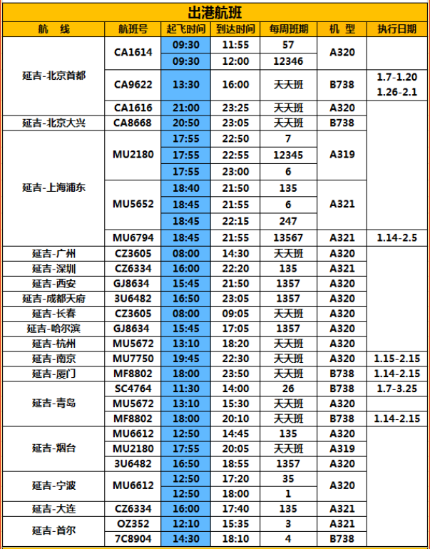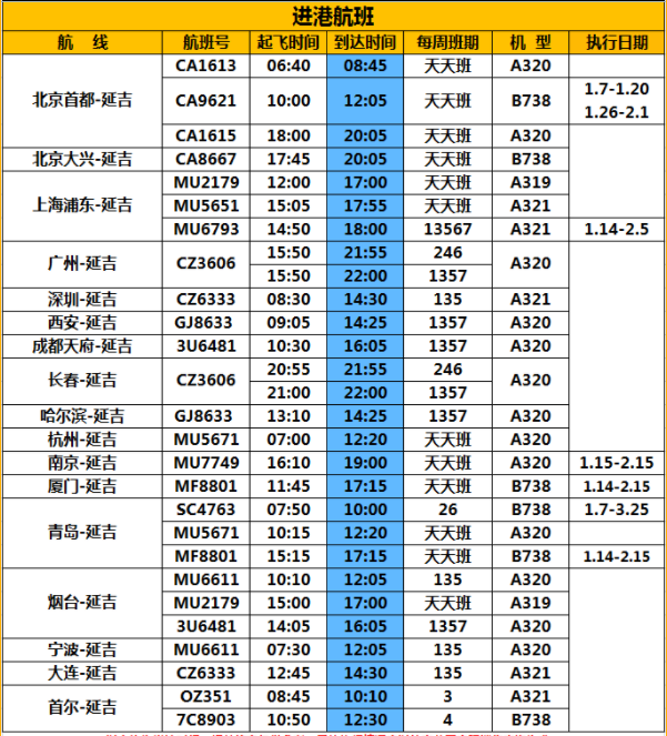 상술한 정보는 모두 현지시간이고 참고용으로서 구체 항공편 시간 집행정황은 항공회사 실제 판매 조회를 기준으로 한다.