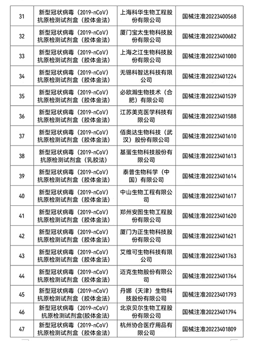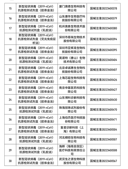 2022년 12월 30일, 국가약품감독관리국의 심사를 거쳐 안휘 심람의료과학기술주식유한회사의 신종코로나바이러스 항원검사시제 제품이 승인되였다. 현재까지 국가약품감독관리국은 50가지 신종코로나바이러스 항원검사시제제품을 승인했다.