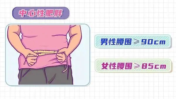 일반적으로 남성은 허리둘레가 90cm 미만, 여성은 85cm 미만이어야 하는데 이 수치를 초과하면 구심성 비만이 있거나 아니면 중심성 비만이라고 한다.