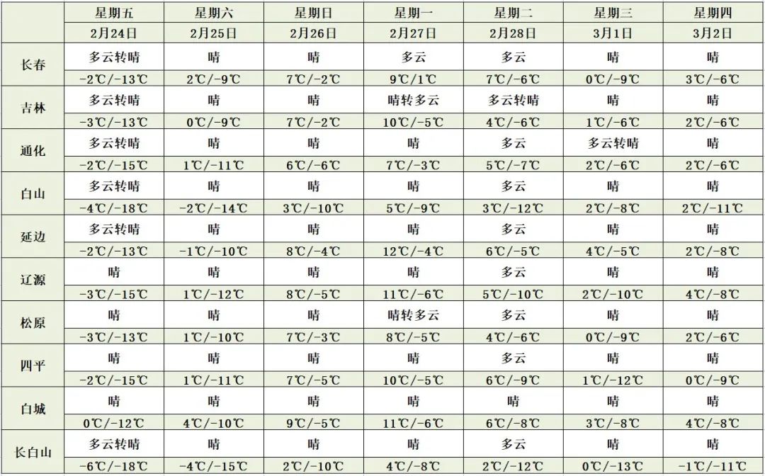 23일 밤 연변지역의 최저기온은 -5℃ 좌우이고 기타 지역은 -13~-9℃이며 24일 낮, 전 성 대부분 지역의 최고기온은 -4~-1℃이다.