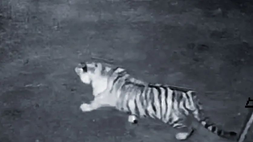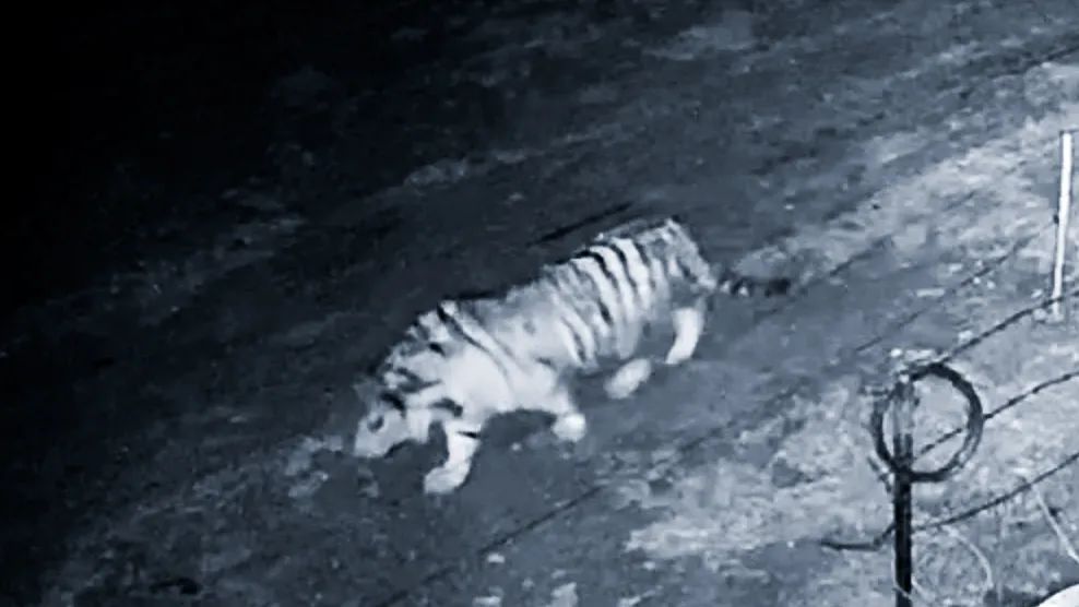 경찰은 즉각 동영상을 확보하는 한편 림업부문과 함께 동영상 내용을 확인해보았는데 동영상 속의 대형 야생동물은 동북호랑이였고 밤중에 먹이를 찾고 있었다.