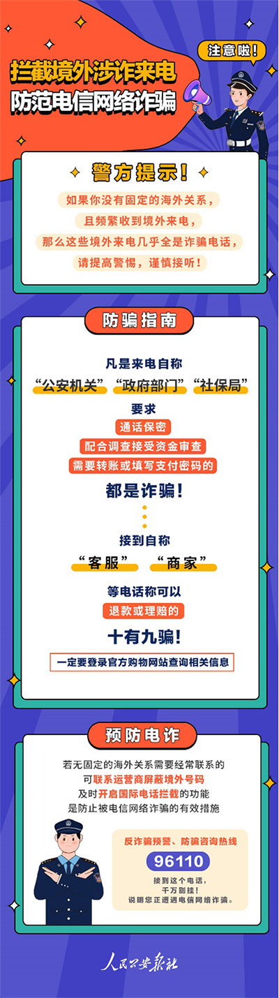 경찰측은 해외에서 온 낯선 전화 혹은 메시지를 받았을 때 반드시 경각심을 높이고 선별을 잘 할 것을 건의했다.