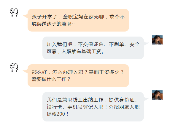"아이들을 학교에 보내고 여유시간이 있는 엄마들 겸직하러 오세요. 보증금도 없이 임직만 하면 기초로임을 드립니다. 온라인 겸직 출납이기에 신분증, 은행카드, 핸드폰 번호를 가지고 임직등록만 하면 됩니다. 친구를 소개해주면 소개비 200원을 드립니다."