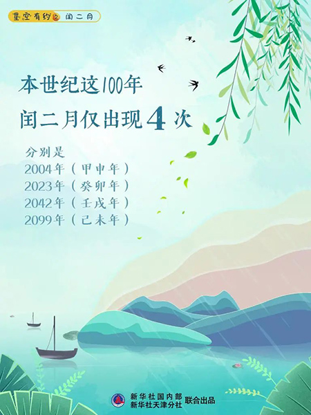 3월 22일은 계묘 토끼년 윤2월 초하루이다. 천문과학보급전문가는 이는 일종의 력법현상으로2월 윤달은 비교적 드물다고 말한다. 21세기 100년 동안에 2월 윤달은 모두 네번 나타난다. 그후의 몇세기 동안 2월 윤달의 출현빈도는 점차 감소하여 한번 또는 두번 나타나거나 한번도 나타나지 않을 수도 있다.