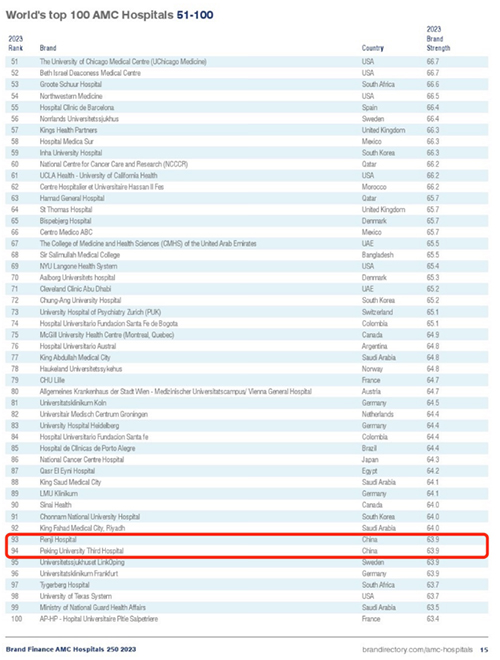 그중 상해교통대학의학원 부속인제병원과 북경대학 제3병원이 이 순위 100위권에 진입했는데 각각 93위와 94위를 차지했다. 이 순위는 세계 28개 국가와 지역의 2300여개 병원에 대해 순위를 정했다. 상위 100위권에 드는 국내 두 병원은 어떤 우세가 있을가?