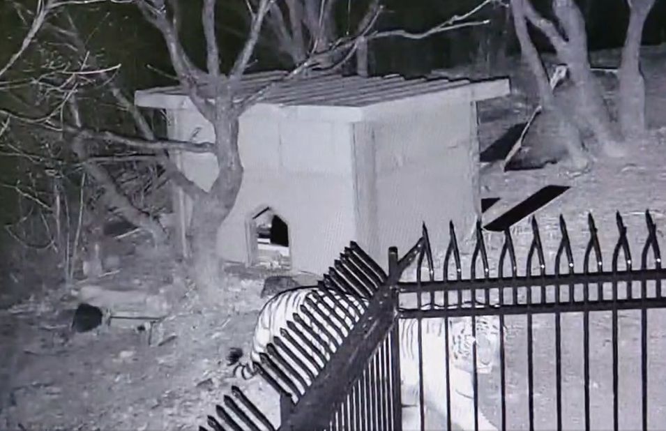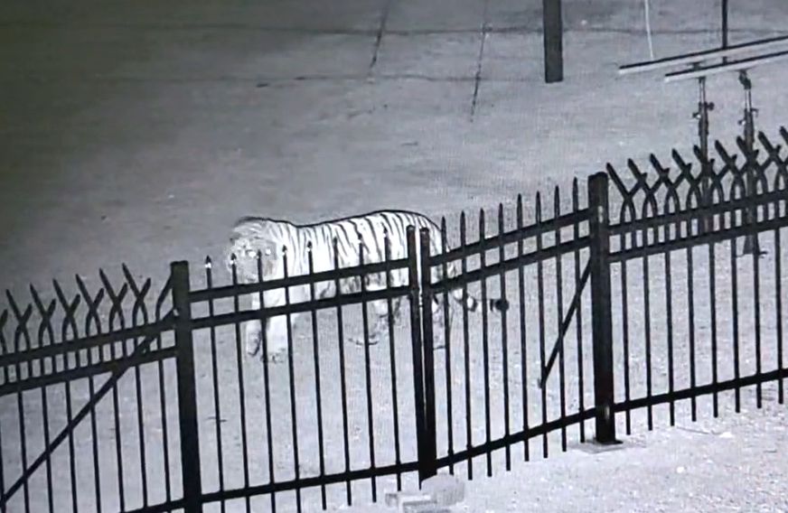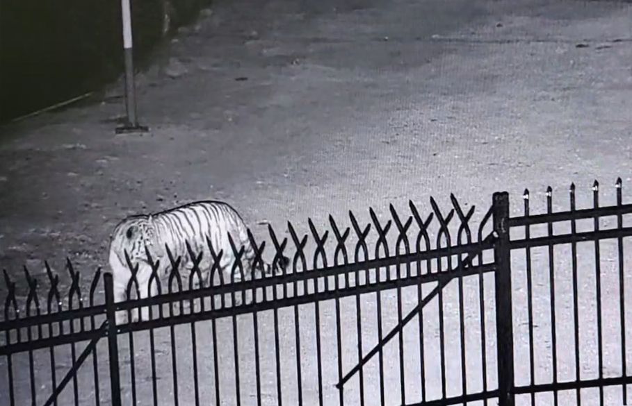 사건발생지점은 훈춘시 경신진 금당촌으로 인구가 비교적 밀집되여 있고 목장과 린접해있다. CCTV 영상을 보면 동북호랑이는 4월 13일 새벽 2시 27분 이곳에 도착해 처음에는 살금살금 걸으며 울타리 안을 들여다보다가 안에서 아무런 기척이 없자 점점 대담해졌고 계속해 앞으로 갔다. 당시 견사 안에서 개 한마리가 자고 있었는데 이상을 감지하지 못했다. 동북호랑이는 3분 가량 어슬렁거리다 울타리 안에 들어갈 기회를 잡지 못하자 몸을 돌려 이곳을 떠났다.