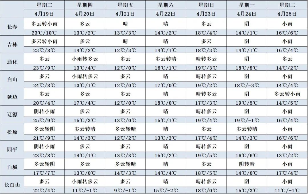 래일 밤부터 모레 낮까지 전 성은 구름이 많고 이따금 흐리겠으며 장춘, 사평, 료원, 길림, 통화, 백산, 연변 서부, 장백산보호구에는 적은 비가 내리겠다.