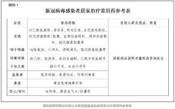 이 ‘자구책’은 신종코로나바이러스 증상에 대한 투약 지도를 하고 있다. 례를 들어 어린이의 체온이 38.5°C를 초과하면 이부프로펜과 아세트아미노펜 두가지 해열제를 번갈아 복용하고 눈이 가렵고 염증이 생기면 새로운 균주 감염에 인한 결막염이 발생할 수 있으므로 아시클로비르, 리바비린 등을 떨어뜨려 불편함을 완화하고 설사가 멈추지 않으면 몬모릴로나이트(蒙脱石散)를 복용하면 단기간에 증상이 완화되며 가슴이 답답하고 숨이 차면 약간의 비타민C를 섭취할 수 있다고 밝혔다.