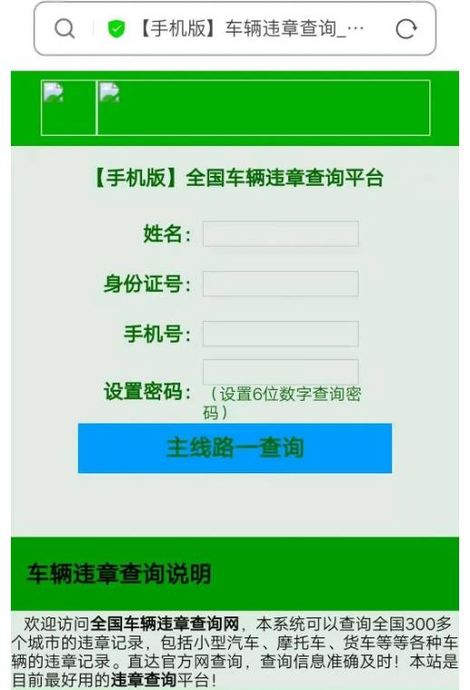 링크를 클릭해 자세한 내용을 확인해보니 짝퉁 교통위반 조회 플랫폼이였으며 요구에 따라 이름, 신분증, 휴대전화 번호, 비밀번호 등을 입력하면 개인정보가 류출된다. 그러나 사기꾼이 요구하는 것은 이것뿐만이 아니다. 다음 단계는 피해자를 유도하여 사기 앱을 다운받게 함으로써 돈을 사취하는 목적을 이룬다.