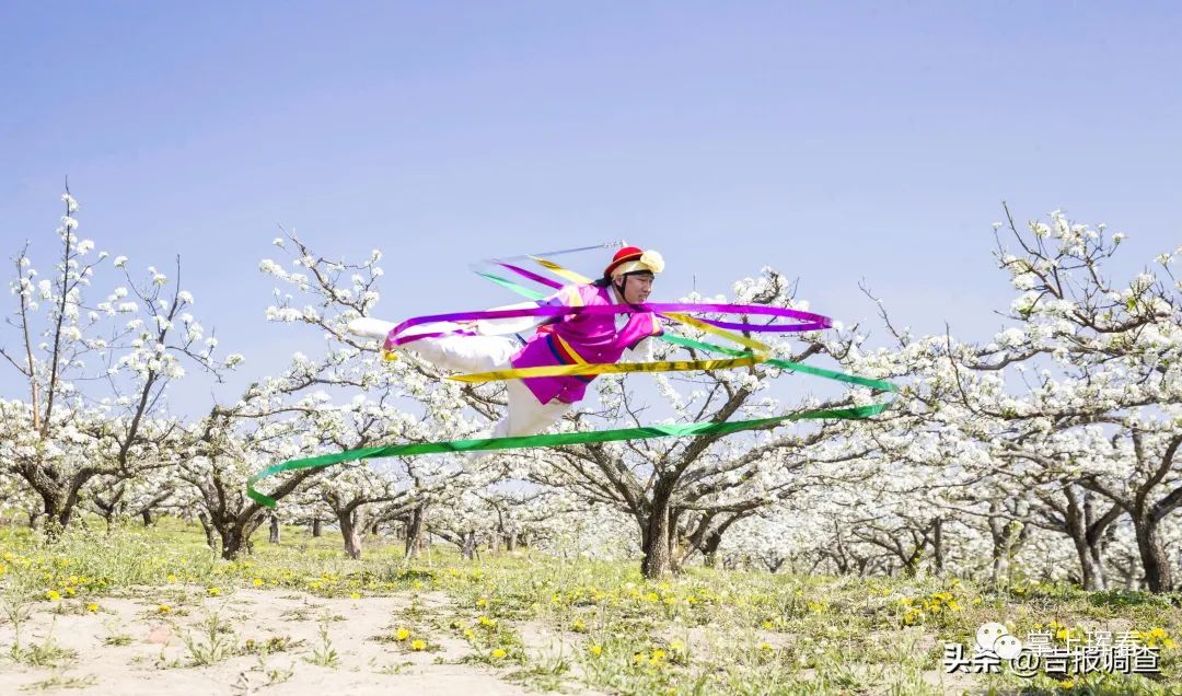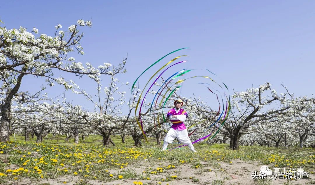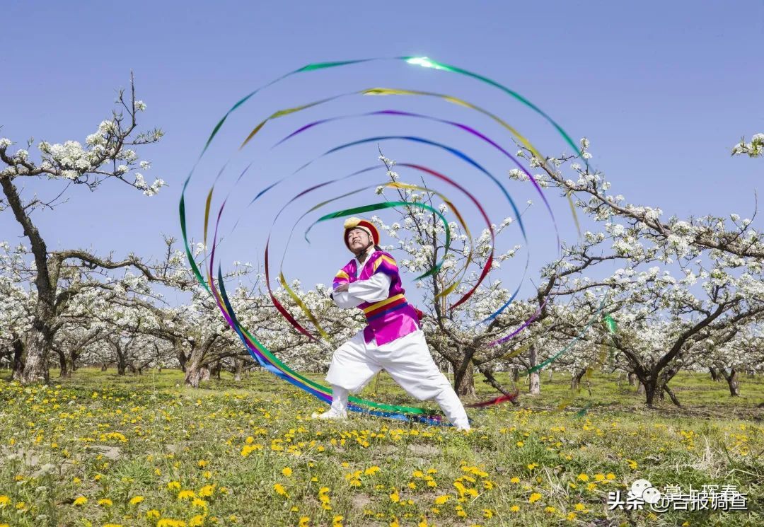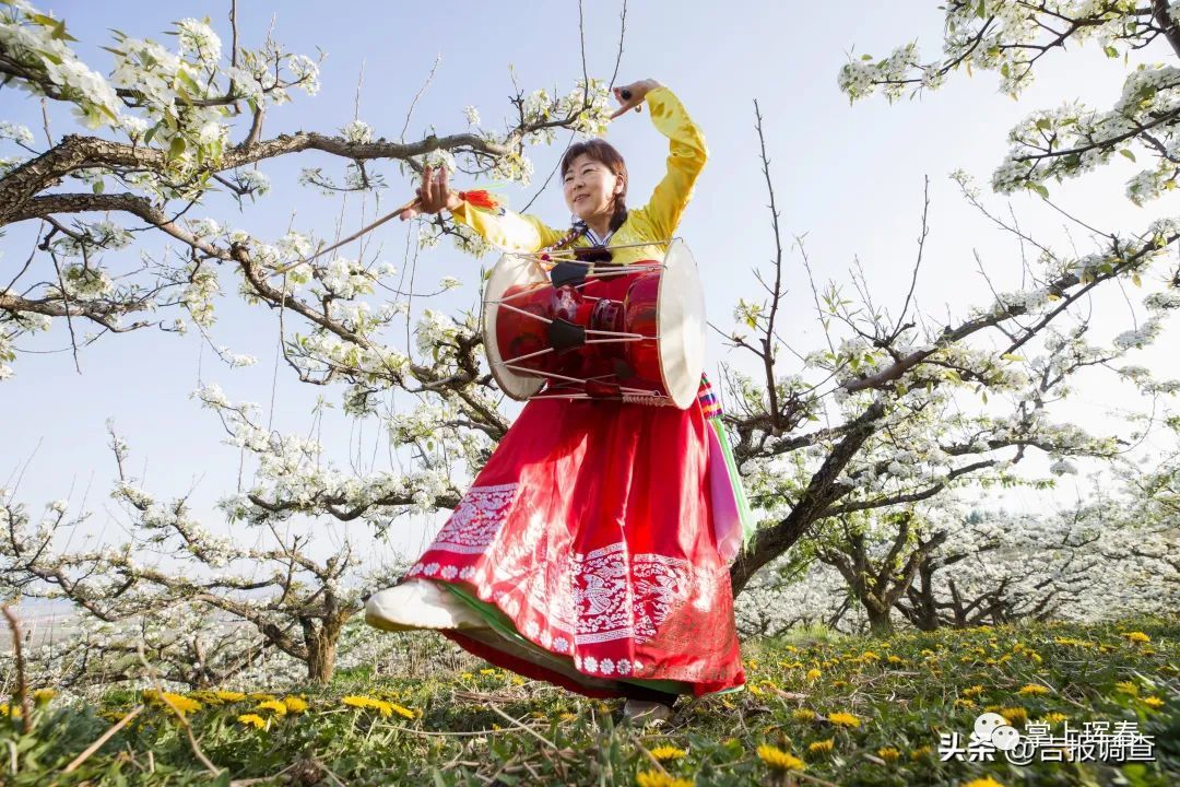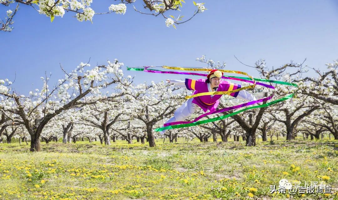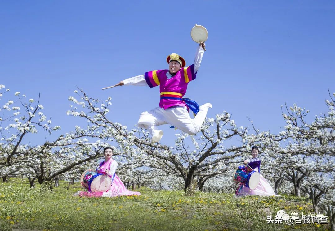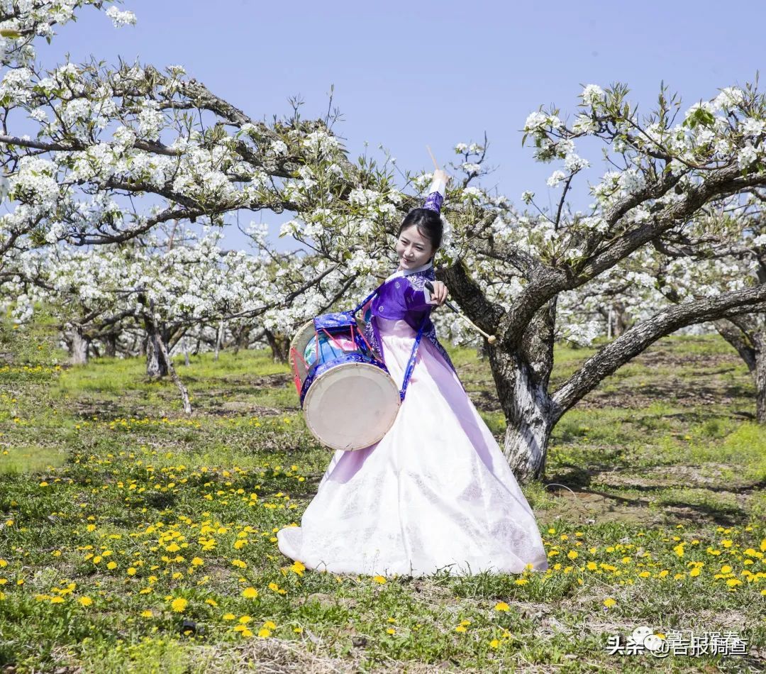 푸른 하늘아래 드넓은 만무과원에 배꽃이 흐드러지게 피고 조선족 과농들이 배꽃 사이를 누비며 노래하고 춤을 추고 있는데 초록의 밭과 백설같은 배꽃 사이로 알록달록 치마가 휘날리는 모습은 마치 선경에 들어온 듯 황홀하다.