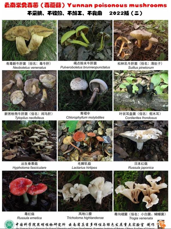 이전에 중국과학원 곤명식물연구소와 운남성 진균다양성록색개발중점연구소는 운남성에서 자주 볼 수 있는 독버섯을 업데이트했는데 24종의 독버섯이 포함되였다.
