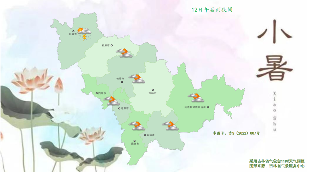 12일 오후부터 밤까지, 길림성은 구름이 많겠으며 백성에는 소나기가 내릴 것으로 예상된다.