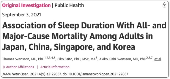2021년 《미국의학회잡지》 온라인잡지에 발표된 한차례 연구에서는 일본, 중국, 싱가포르 및 한국 성인들의 수면시간과 전체 사망률 사이의 관계를 제시했다. 지속적으로 수면이 부족하거나 지속적으로 과도한 수면은 모두 사망률을 증가시킬 수 있는데 7시간이 바로 최적의 수면시간이라고 한다.