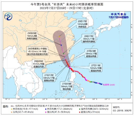 중앙기상청은 7월 27일 06시에 계속하여 태풍 적색주의보를 발령했다.