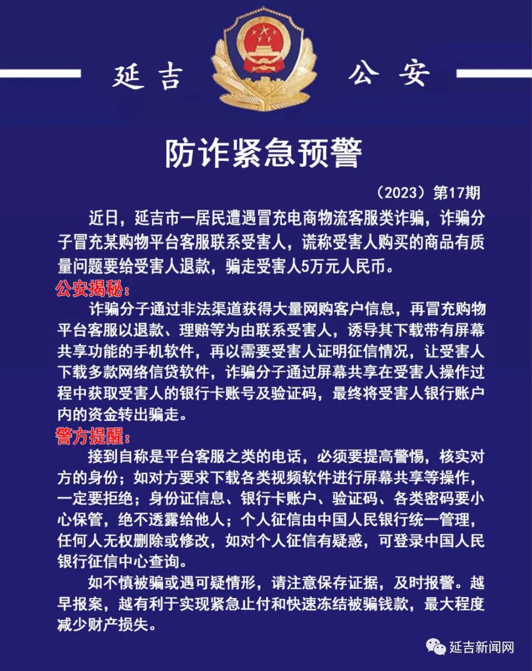 일전, 연길시 한 주민이 전자상거래 물류고객센터를 사칭한 사기를 당했다. 사기분자는 모 쇼핑플랫폼 고객센터를 사칭해 피해자가 구매한 상품에 품질문제가 있으니 환불해주겠다고 하면서 피해자로부터 인민페 5만원을 사기쳤다.