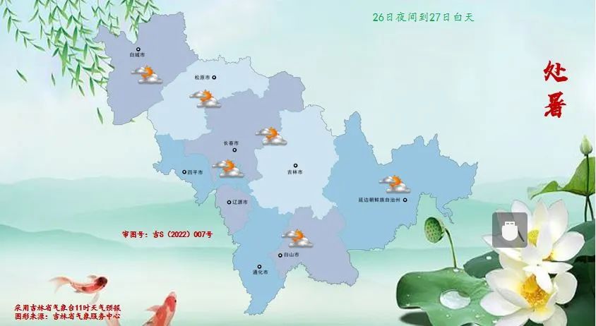 길림성은 구름이 많고 길림 동부, 통화, 백산, 연변, 장백산보호구에는 적은 비가 내리겠다.