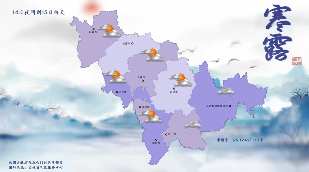 14일 밤부터 15일 낮까지, 길림성은 구름이 많겠고 백산, 연변, 장백산보호구에는 적은 비가 내릴 것으로 예상된다.