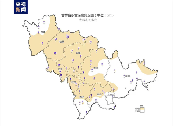 저고도 랭간절단의 영향을 받아 11월 8일 아침부터 길림성 대부분 지역에서는 눈비날씨가 출현했고 위상변환을 동반했다. 현재 길림성 대부분 지역에는 눈이 쌓였고 최대 적설은 유수시에 나타났으며 그 깊이는 30cm에 달했다.