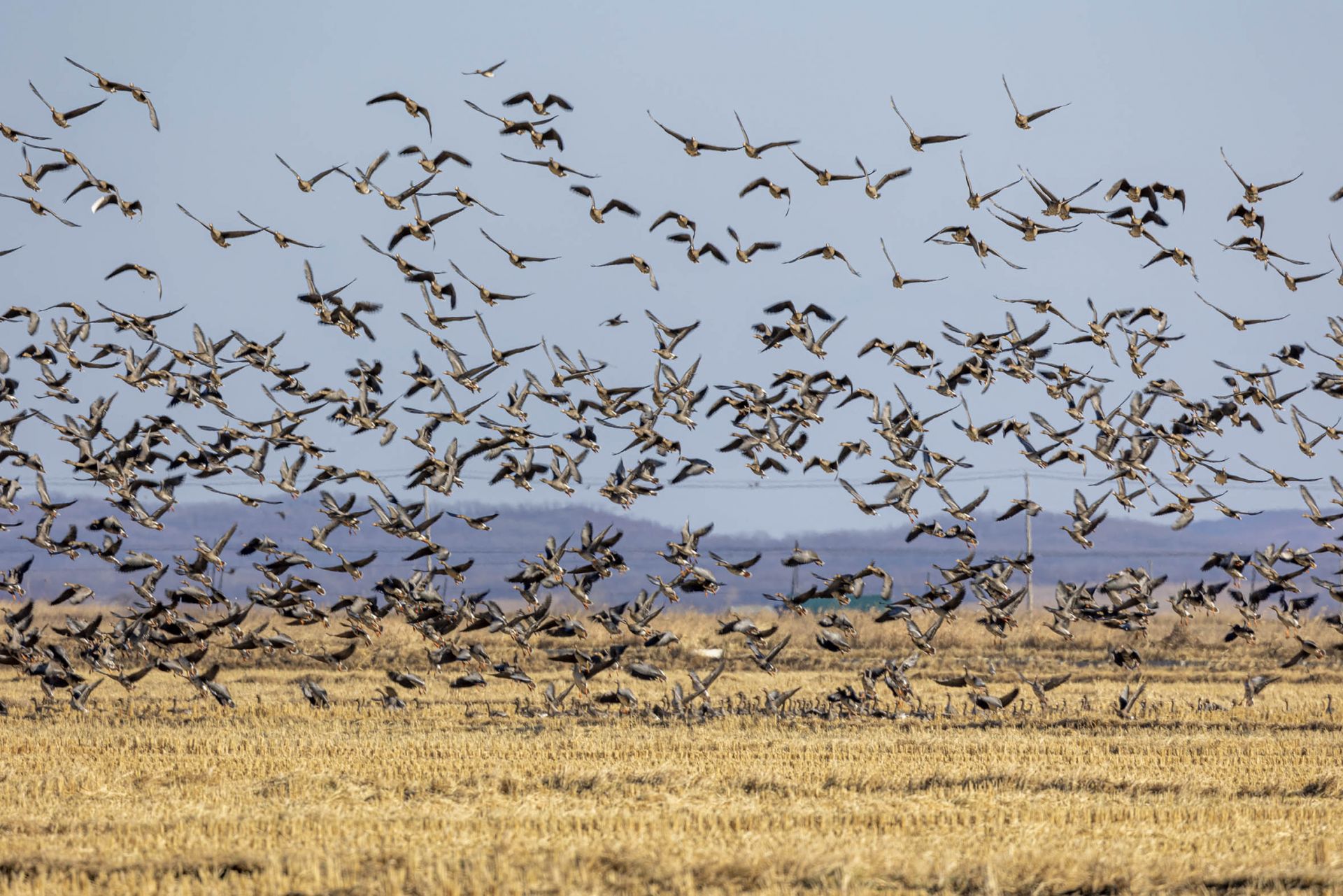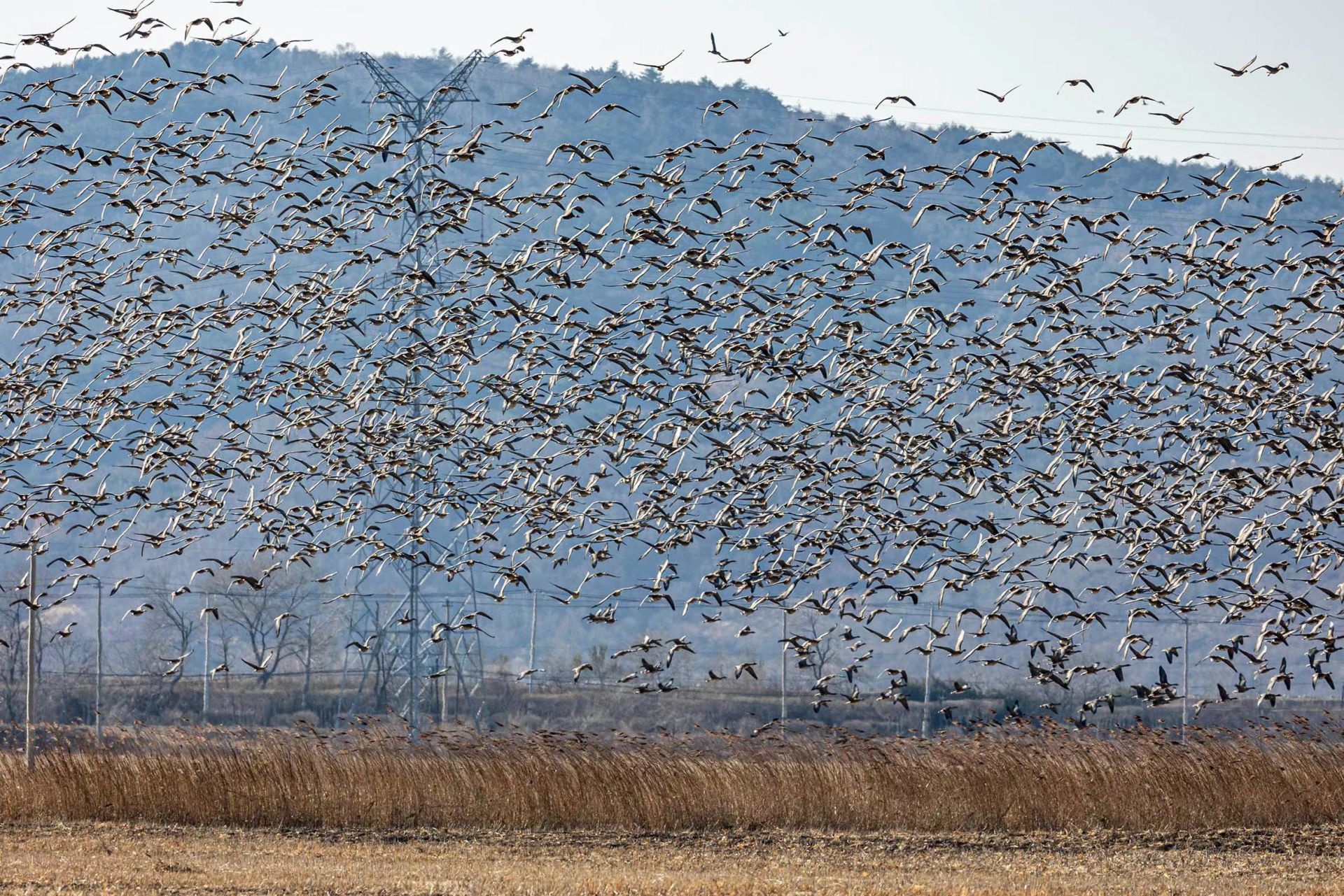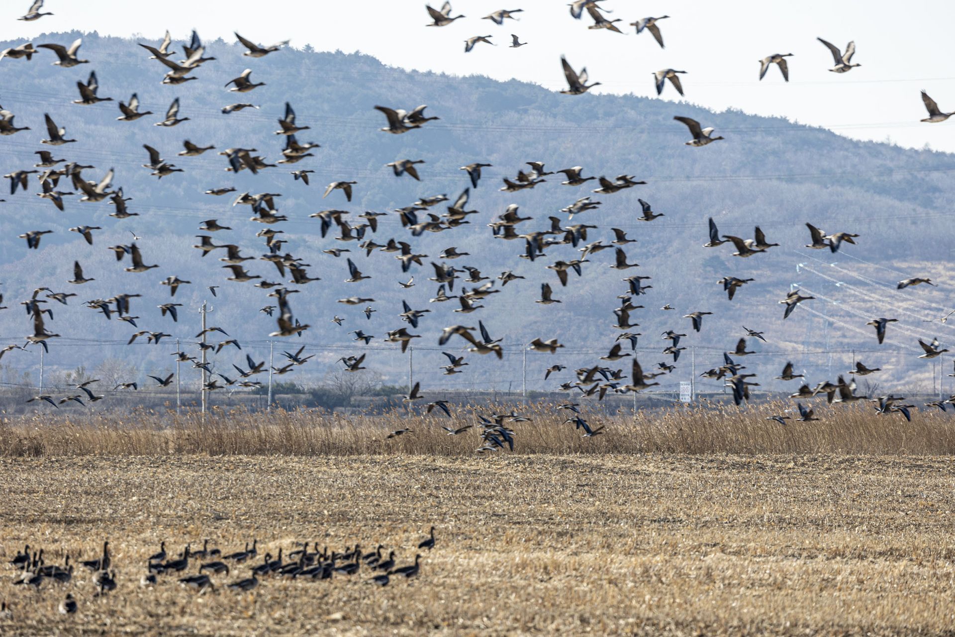 일전, 연길시 73세 사진작가 남영철은 훈춘시 경신습지에서 수만마리의 기러기가 남쪽으로 이동하는 장관을 촬영했다. 이 기러기들은 자유롭게 비상하며 훈춘의 아름다운 겨울풍경을 만끽하는 듯 했다.