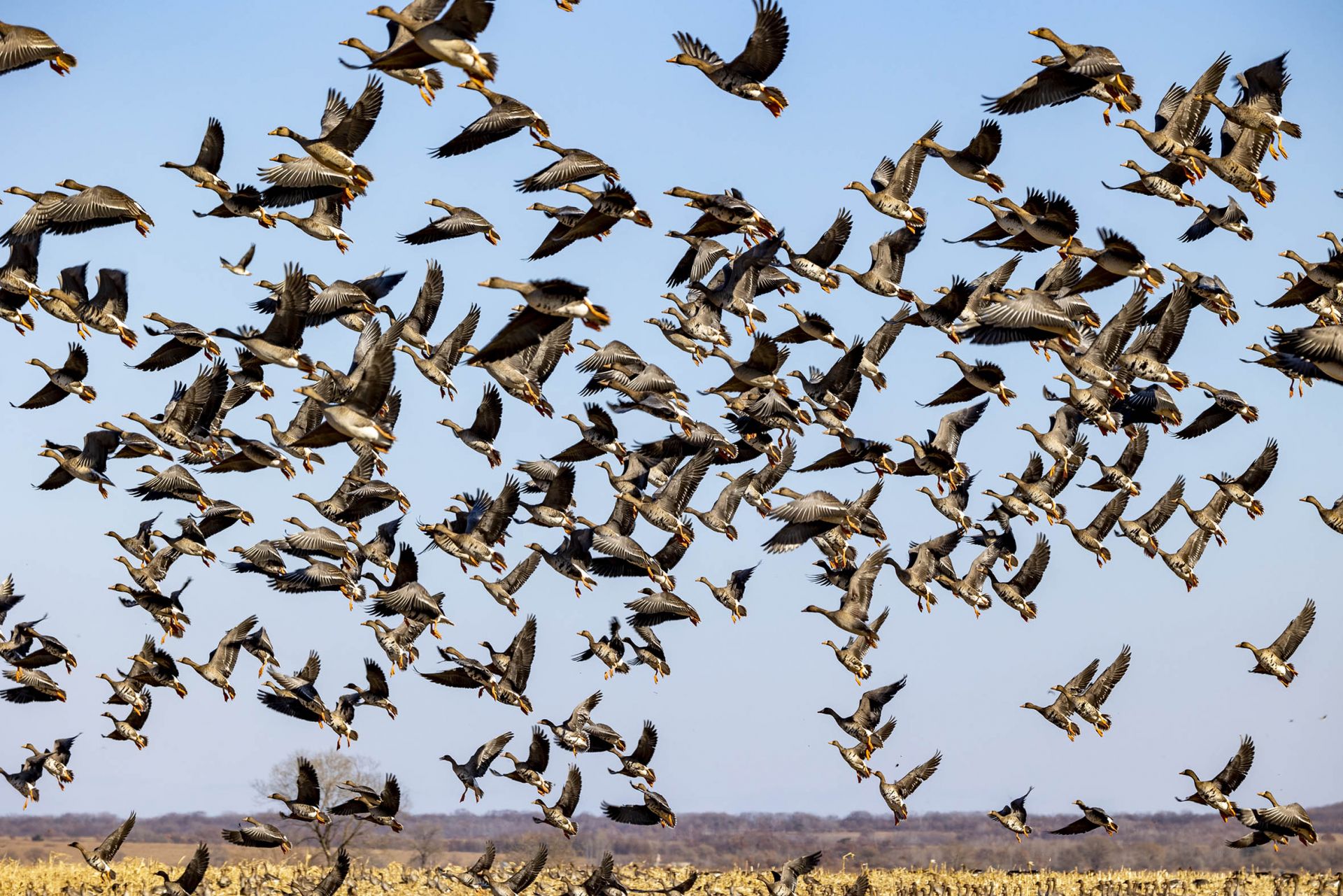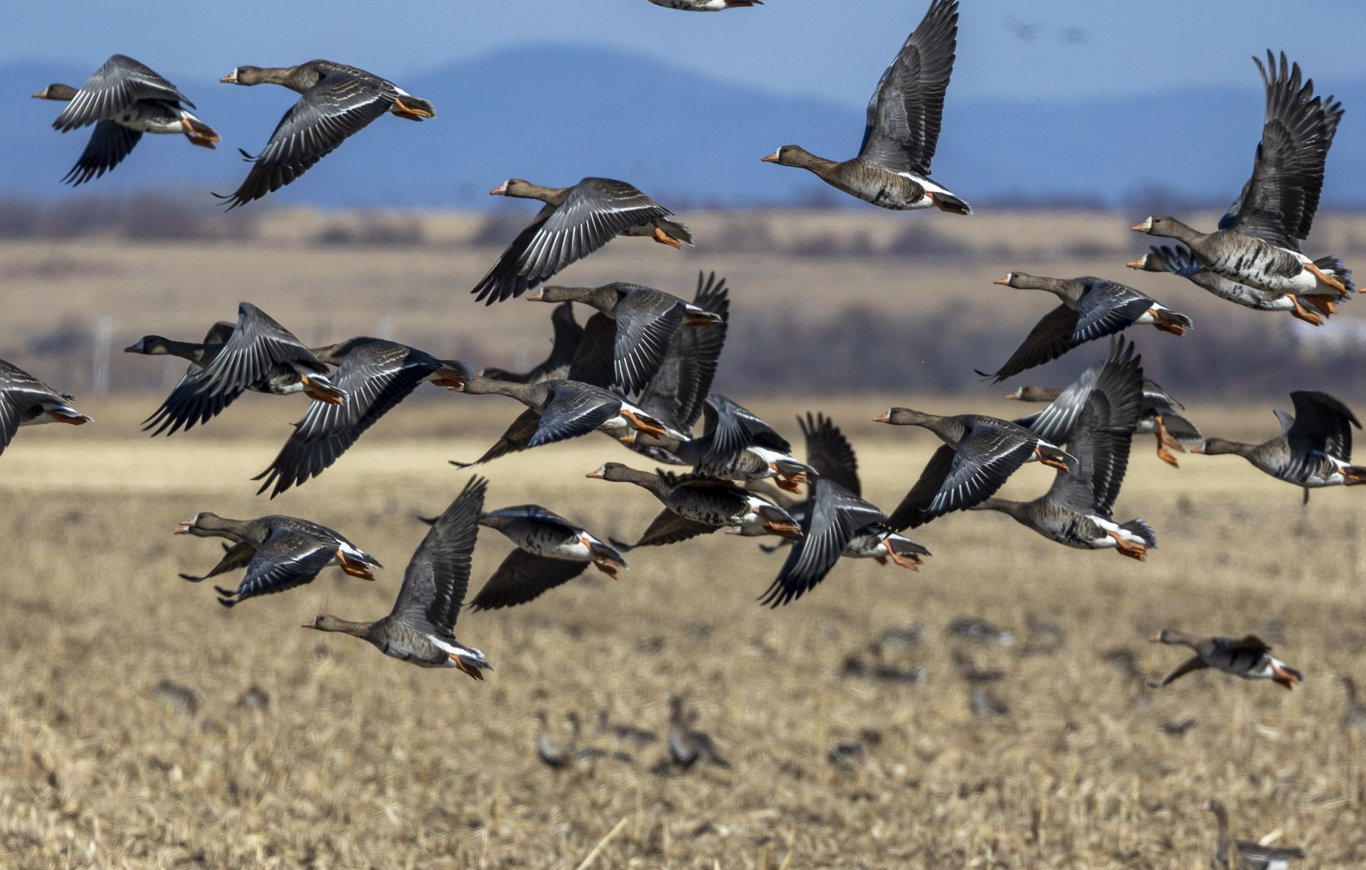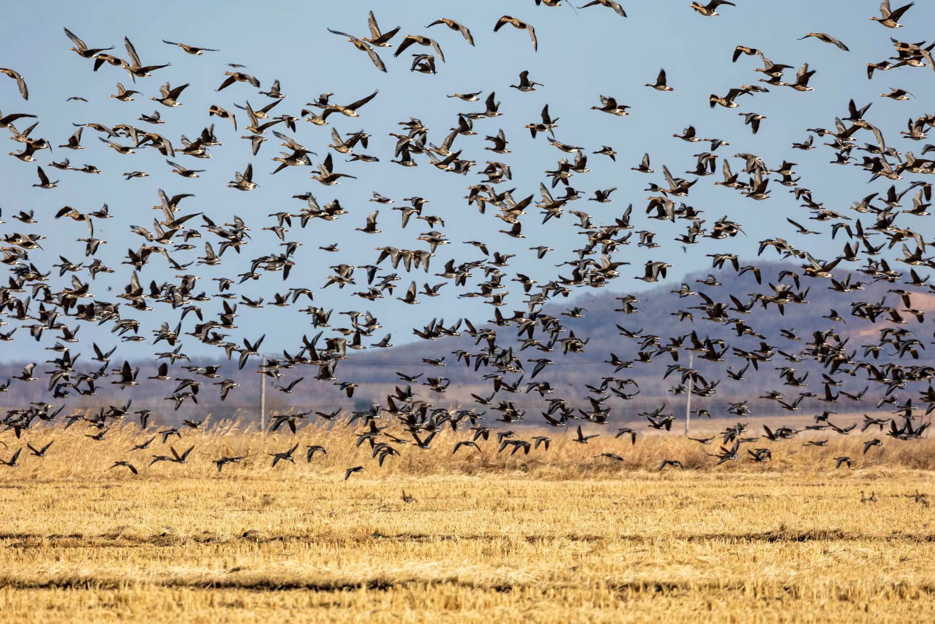 일전, 연길시 73세 사진작가 남영철은 훈춘시 경신습지에서 수만마리의 기러기가 남쪽으로 이동하는 장관을 촬영했다. 이 기러기들은 자유롭게 비상하며 훈춘의 아름다운 겨울풍경을 만끽하는 듯 했다.