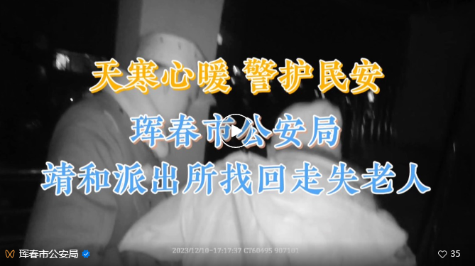 12월 10일 11시경, 훈춘시공안국에서는 훈춘 시민 김녀사로부터 남편 양선생이 닭알을 사러 슈퍼마켓을 간다고 나간후 련락이 되지 않는다는 신고를 받았다. 김녀사에 따르면 올해 86세인 양선생은 알츠하이머를 앓고 있다고 한다. 신고를 접수한 훈춘시공안국 경하파출소 민경은 주변 감시카메라를 찾아보는 한편 경찰력을 동원해 양선생이 경과한 로선을 따라 찾아나섰다. 반나절의 노력으로 소식이 끊겼던 양선생을 찾아 무사히 집으로 돌려보냈다.
