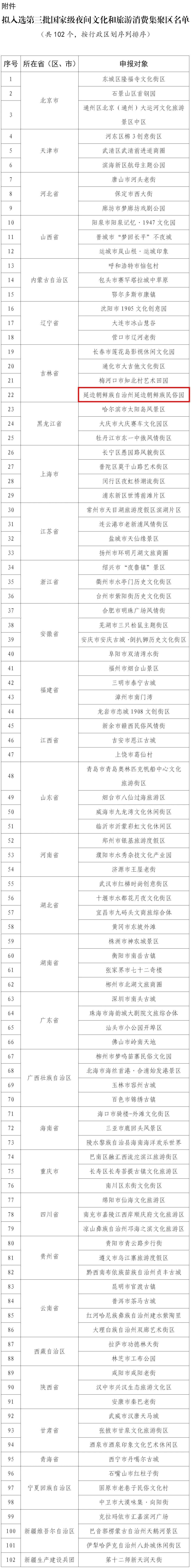 12월 22일, 문화및관광부는 제3진 국가급 야간문화와 관광소비집결구 명단을 공시했다.