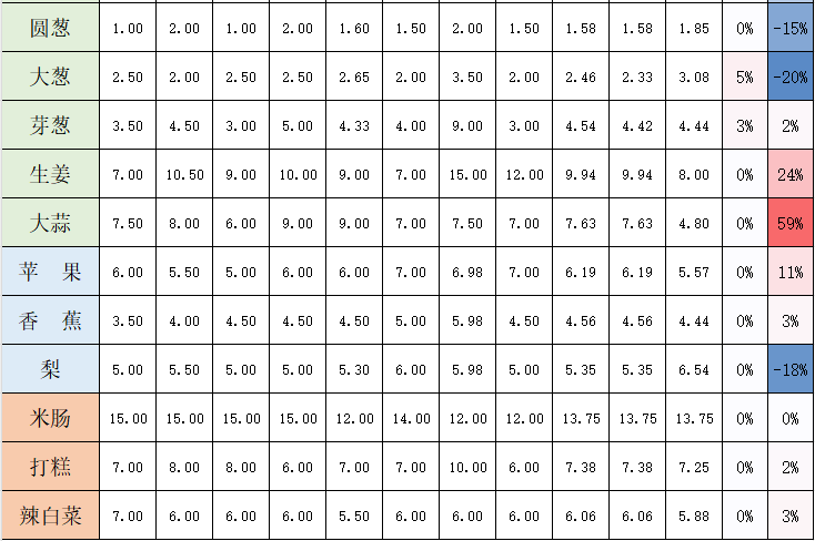 3. 이 가격은 당지 주요 농업무역시장과 슈퍼마켓의 평균 가격이며 참고용으로만 제공된다.