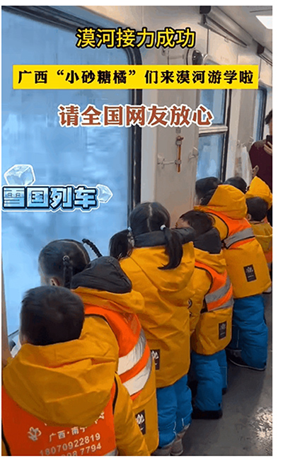 그중에 11명의 “광서 ‘꼬마설탕귤’”이 할빈을 려행하고 있는 모습이 인터넷을 뜨겁게 달구었고 많은 네티즌들은 인터넷을 통해 ‘클라우드아기돌봄’을 돕고 있다.