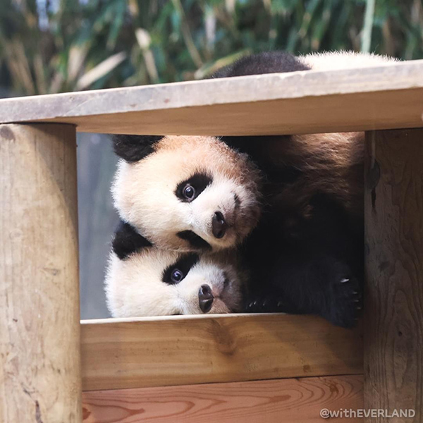 ‘아이바오’와 ‘러바오’는 2016년에 한국에 도착해 에버랜드 ‘참대곰월드’에 입주했다. 2020년에 ‘푸바오’에 이어 지난해 7월 7일 암컷 쌍둥이 새끼를 낳았다. 중국 참대곰은 한국인들의 큰 사랑을 받으며 중한 민간교류를 촉진하는 가장 ‘멍(萌)’한 친선전도사가 되였다.
