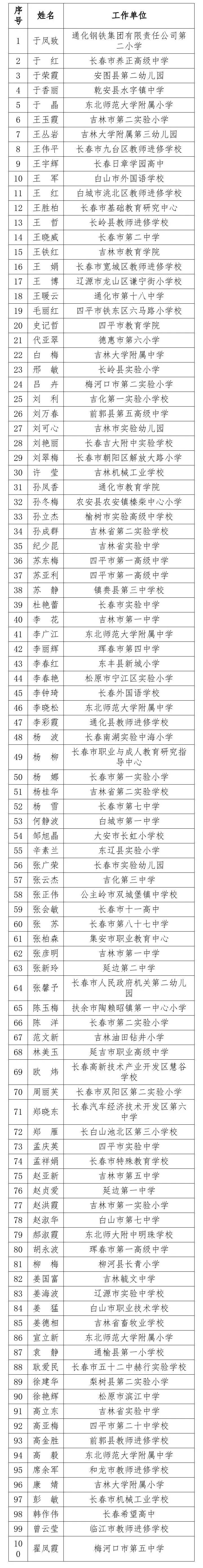 길림성 제10진 중소학교 특급교원 표창예정대상 명단