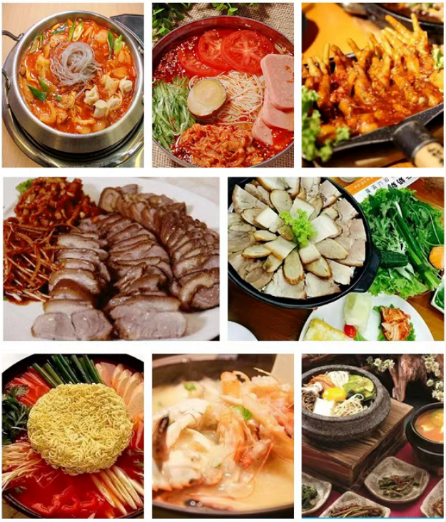 꼬치구이, 랭면, 보쌈, 삼계탕, 순대, 비빔밥...