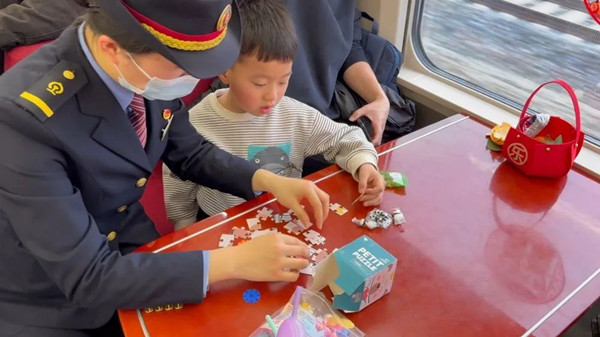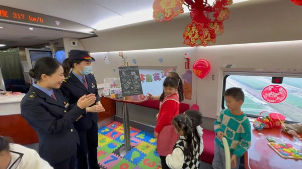 2024년 음력설운수의 막이 열렸다. 1월 29일 오후, 하문에서 상해로 가는 G1654 고속렬차에서 한무리의 꼬마승객들이 승무원의 인솔하에 서로 웃고 떠들며 재미나는 미니게임을 시작했다.