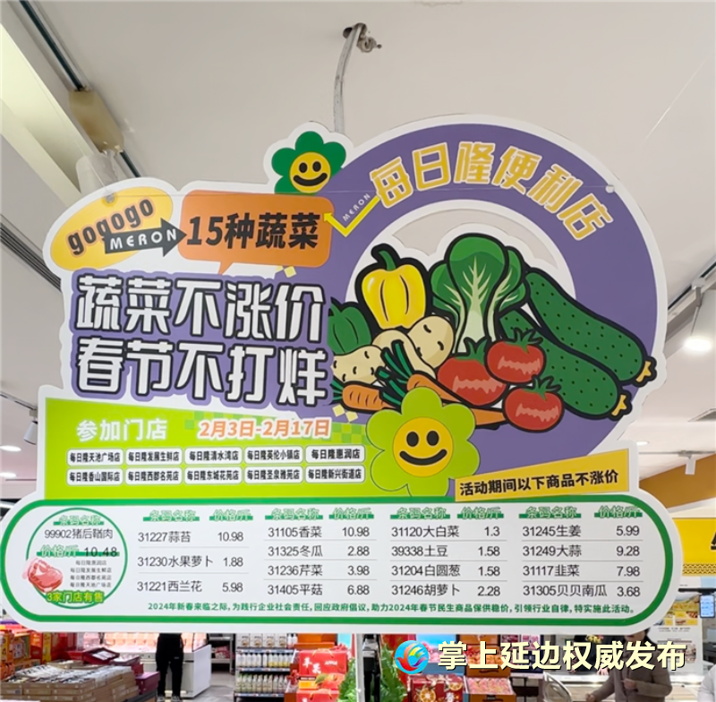 음력설이 다가오면서 많은 시민들이 설맞이 용품 구매를 시작했다. 음력설기간 남새시장의 안정적인 공급을 위해 연길백화슈퍼, 매일룽의 10개 편리점은 정부 호소에 적극 호응하여 2월 3일부터 17일까지 15가지 남새의 가격을 인상하지 않기로 약속했다.