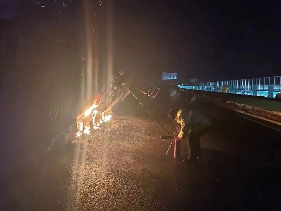 2월 4일 저녁 9시반쯤 고속도로공안국 돈화분국 순라5대대 민경들은 연장고속도로 연길방향 207키로메터 되는 곳에서 화물차에 불이 달렸다는 신고를 접수했다.