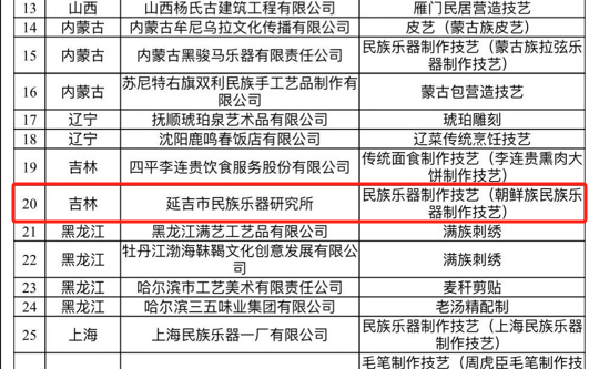 기자가 문화관광부로부터 료해한 데 따르면 <‘14차 5개년’계획 무형문화유산 보호계획>과 문화관광부 등 10개 부문의 <전통공예의 고품질 전승발전을 추동할 데 관한 통지>의 사업요구에 따라 각 지역의 추천을 바탕으로 전문가검토, 현장고찰 및 사회공시 등 절차를 거쳐 문화관광부는 99개 기업 및 단위를 ‘2023년-2025년 국가급 무형문화유산 생산성 보호시범기지’(이하 ‘시범기지’로 략칭)로 지정하고 공포했다. 그중 연변주에서는 연길시민족악기연구소가 국가급 무형문화재 생산성 보호시범기지로 선정되였다.