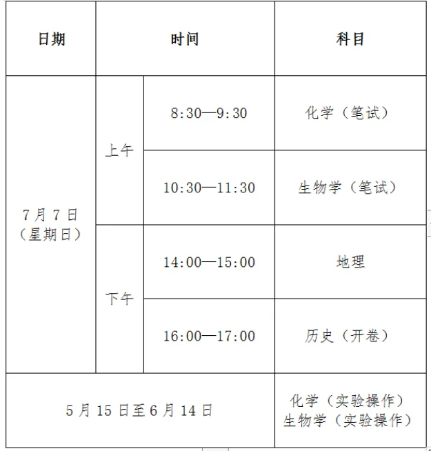 2024년 상반년 길림성 일반고중 학업수준 합격성 시험일정표