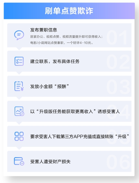 최근 틱톡(抖音)은 ‘주문량 부풀리기, 좋아요 누르기, 동영상 대리발송 등 아르바이트 사기에 대한 알림’를 발표하여 일부 계정이 개인메시지 및 단체채팅방에 주문량 부풀리기, 좋아요 누르기, 동영상 대리발송 등 다양한 류형을 포함하는 아르바이트직 채용 정보를 게시하고 피해자와 련락을 취한 후 소액의 보수를 통해 상대방이 제3자 APP에서 지속적으로 송금 및 충전하도록 유도하여 결국 재산손실을 입게 하고 있다고 밝혔다.